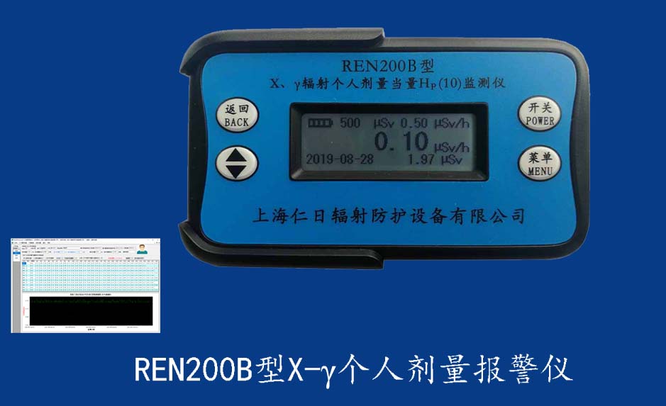 REN210型X、γ、中子個(gè)人輻射報(bào)警儀內(nèi)置SiPM和鋰玻璃晶體組成中子探測器儀器,采用反照率方式探測中子射線,同時(shí)也能探測X、γ射線。因此它可同事監(jiān)檢測X、γ、中子三種射線。能顯示工作場所的劑量當(dāng)量率和累積劑量,更換電池時(shí),日期及累積數(shù)據(jù)能永久保存。可選配RenRiPersonal個(gè)人劑量管理軟件,該軟件可存儲(chǔ)多個(gè)人的歷史數(shù)據(jù),能記錄日累積、月累積、年累積、輻照時(shí)長、計(jì)算平均劑量率、扣除或不扣除本底輻射,且以文字和圖譜的方式展現(xiàn)數(shù)據(jù)。廣泛應(yīng)用于環(huán)保、化工、水泥、煤礦、土木工程、石油、醫(yī)院、疾控、進(jìn)出口商檢、核電、加速器、機(jī)場、中子源庫和其他安檢、邊境控制海關(guān)檢測等領(lǐng)域中的工作人員進(jìn)行個(gè)人安全防護(hù)監(jiān)測及放射性提示。